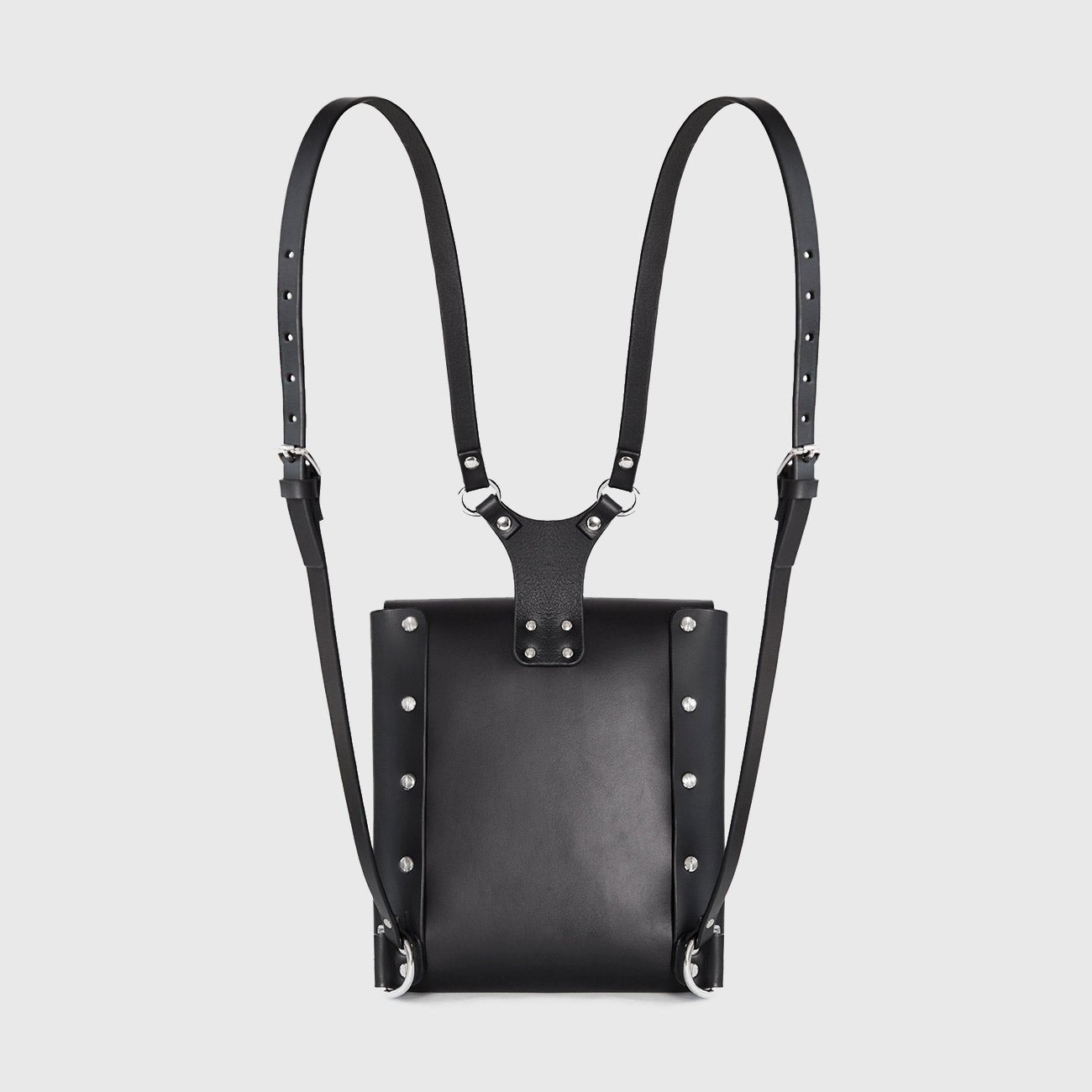 The Small Harness Backpack is a smaller take on a Fleet Ilya classic. Made from smooth saddlery leather it fastens simply and securely on a single stud closure. It's harness structure on the back provides fully adjustable shoulder straps making it suitable for wear over a coat or lighter day wear. This piece comfortably fits a small tablet device plus your other daily essentials.